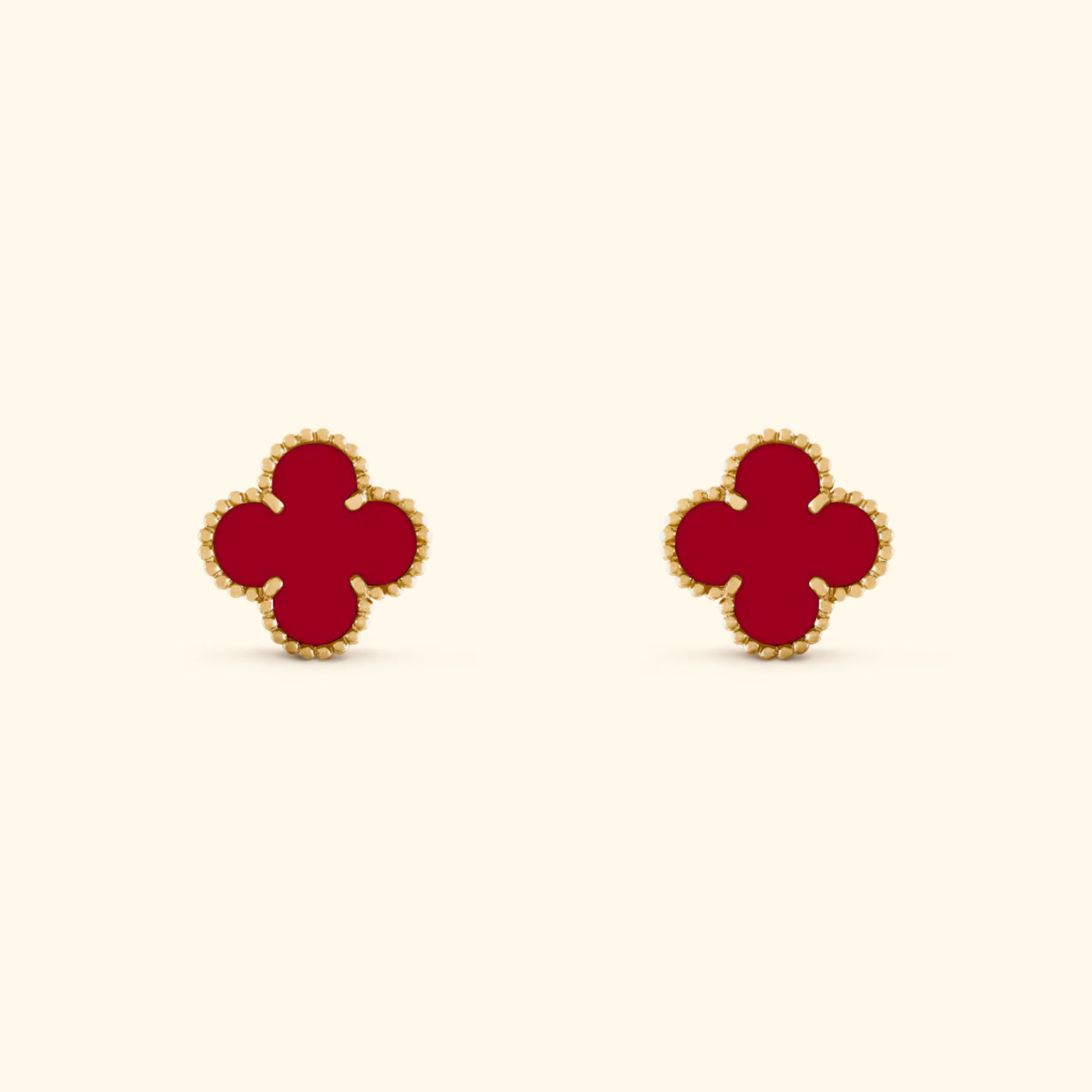 kDe KLAVER Oorbellen zijn een charmant en verfijnd accessoire dat elegantie uitstraalt. Het klavervormig ontwerp met gedetailleerde afwerking voegt een speelse maar luxe uitstraling toe aan je look. Gemaakt van ethisch vervaardigd stainless steel met een 18k gouden afwerking, zijn deze oorbellen een tijdloze keuze voor elke gelegenheid.
