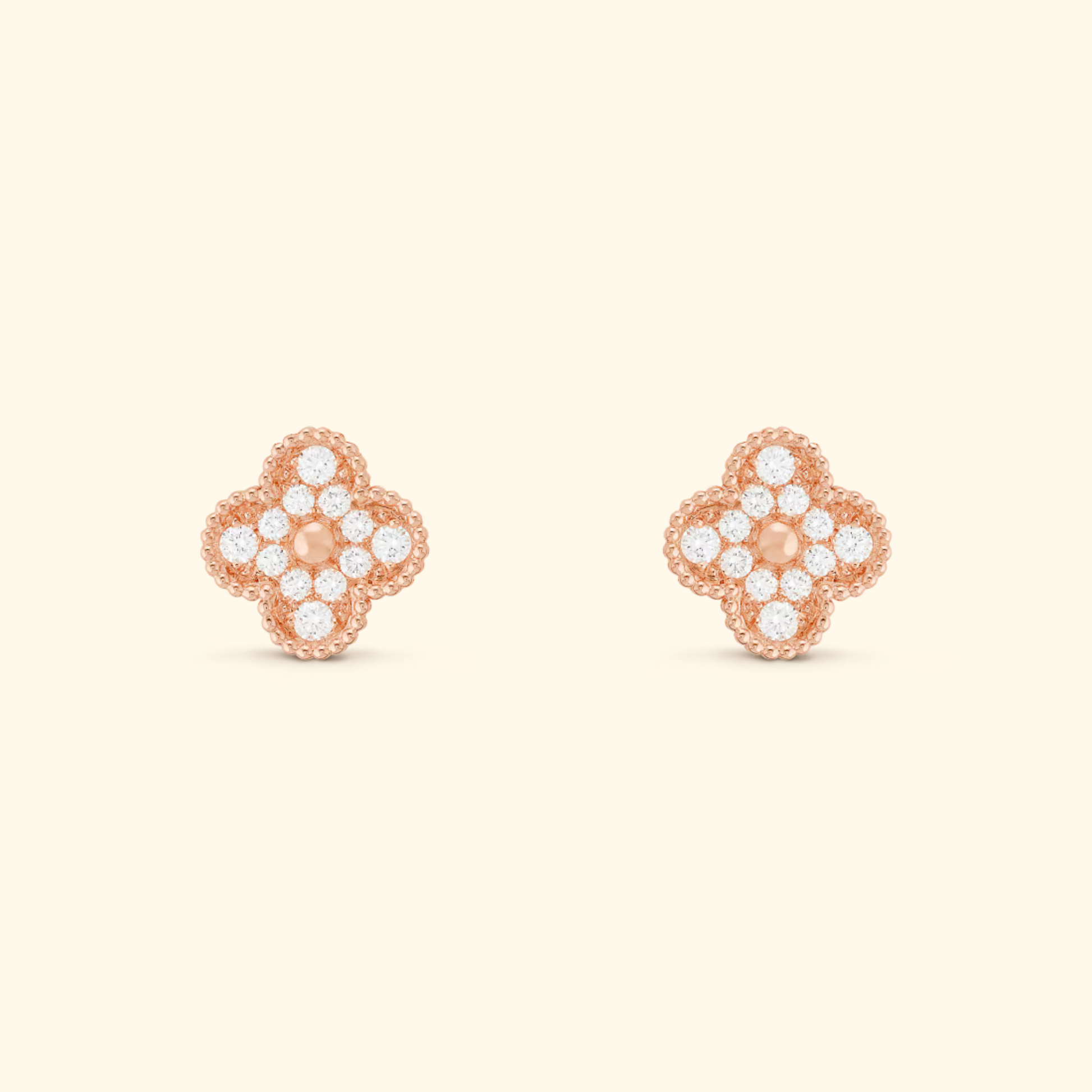 Deze verfijnde klaver oorbellen zijn verrijkt met fonkelende diamantsteentjes die subtiel schitteren bij elke beweging. Het elegante ontwerp met speelse rinkelingen maakt dit een luxe accessoire voor speciale gelegenheden of een glamoureuze everyday look.